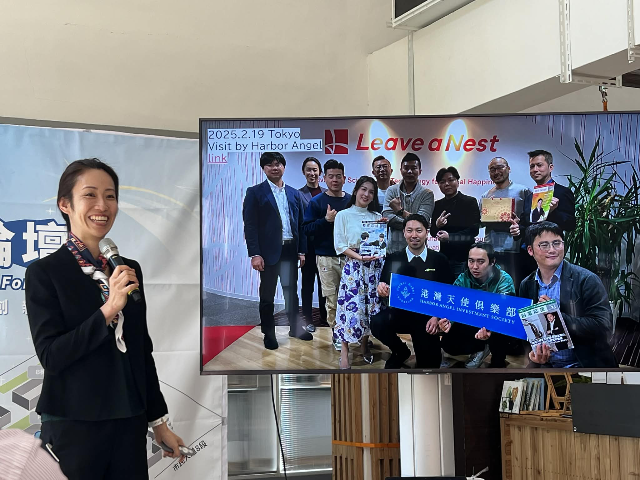 続いて秋永は、「日本と台湾の接続を強める」というテーマのもと、2025年以降に Harbor Angel グループと連携して進めてきた各種活動を紹介しました。こうした取り組みを通じて、台湾との連携に関心を示す日本企業も生まれ始めていることを共有しました。講演では、日本と台湾がともに研究やものづくりに強みを持つ一方で、台湾には自ら創業するという自律精神が根付いており、日本が学べる点も多いことに言及しました。こうした背景を踏まえ、分野や立場を越えて議論し、新たな連携を生み出すための概念として2026年度に 超異分野学会 台湾大会(HIC Taiwan) を初開催することを発表しました。
